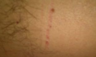 The photo to the right was taken by Kirsty 4 weeks later, 28 October 2017 and on the night of the investigation, this shows the same area. No marks of any sort can be seen and considered to be the cause of the black lines.