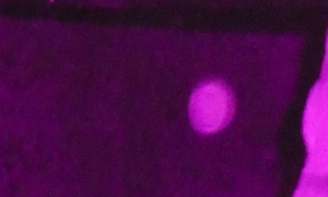 The above photo was taken by Paige Hughes using our camera in the far area of the cellar. This light anomaly is producing it's own energy source. We have no explanation what it is but is in keeping with other evidence we have gathered over many years but it's still remains rare to capture this type of anomaly (right image is magnified)